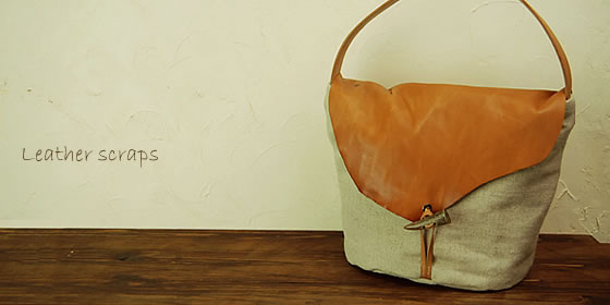 持ち手・フラップ部分:牛革、表地:麻帆布