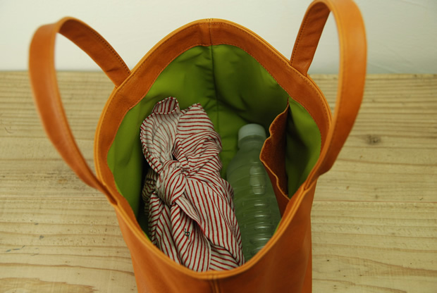 やわらか目でくったりした革なので、たくさん入れたときでも、少ないときでも、量に応じて自然にカタチが変わります。